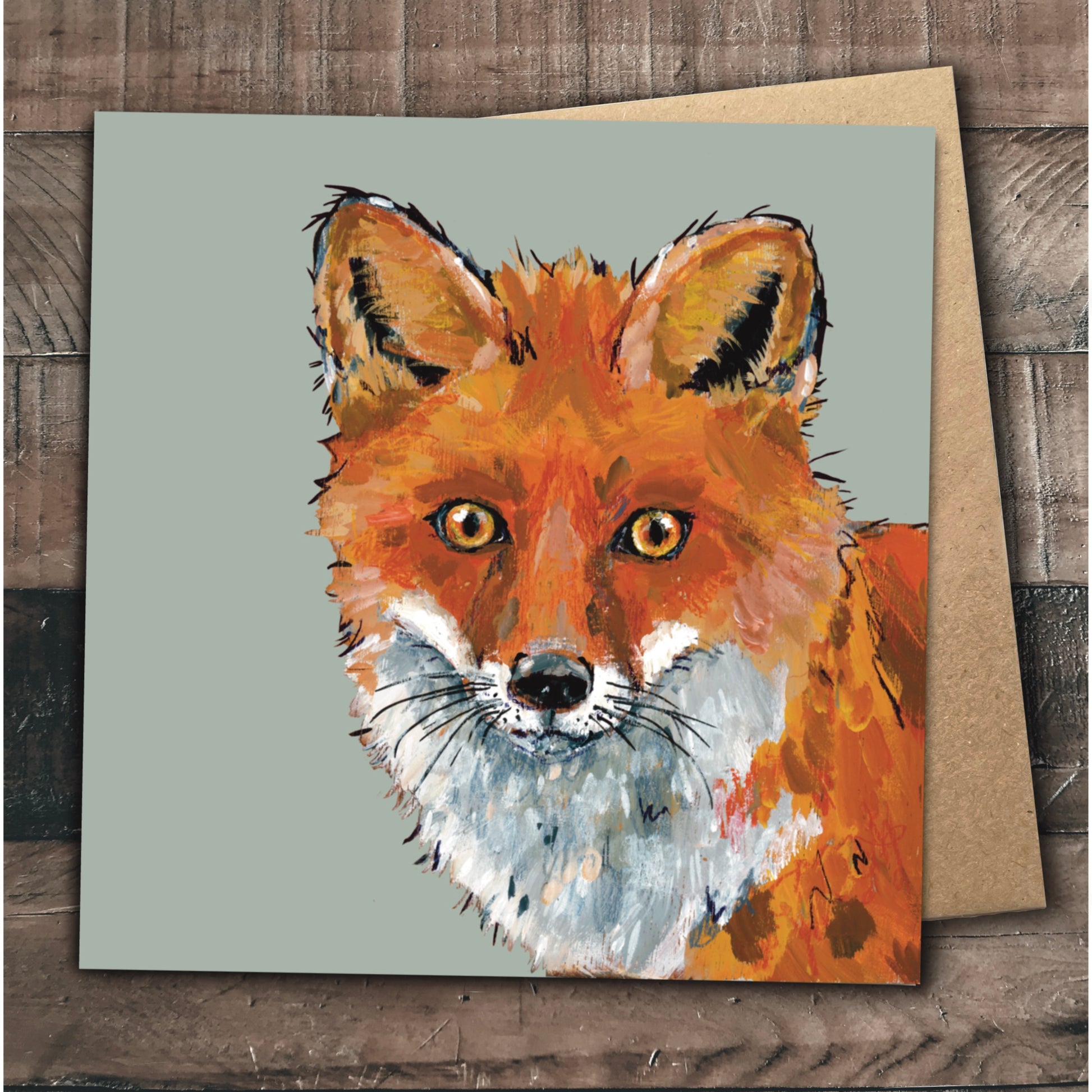 This eco friendly greetings card features my original painting of Droolious the Fox.