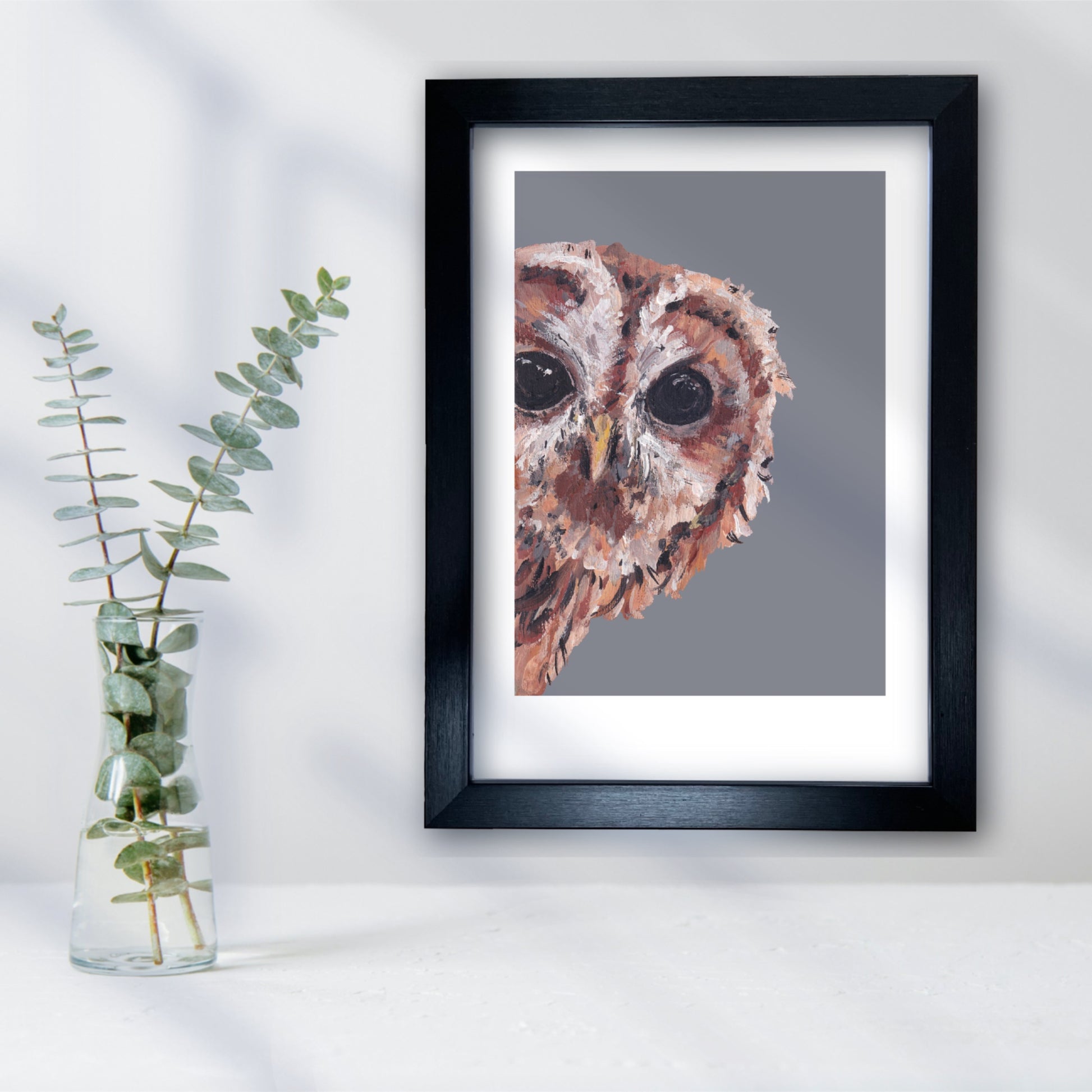 Eco friendly art print of my original painting Peeps the Tawny Owl.